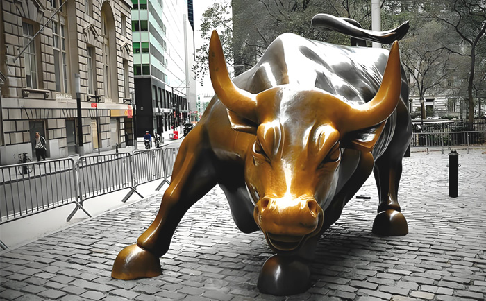 紐約曼哈頓的華爾街銅牛,無疑是全球最具影響力的銅牛雕塑之一。這尊由意大利裔藝術(shù)家阿爾圖羅?迪?莫迪卡創(chuàng)作于 1989 年的作品,重達 3.2 噸,以肌肉虬結(jié)的軀體、昂首前沖的姿態(tài),成為 “牛市” 的象征。其誕生背景頗具傳奇色彩:在 1987 年美股崩盤后,藝術(shù)家自掏腰包 36 萬美元鑄造銅牛,連夜安放在紐約證券交易所前的圣誕樹下,寓意 “經(jīng)濟復(fù)蘇”。盡管初期因 “非法放置” 引發(fā)爭議,但民眾對它的熱愛最終讓其落戶于百老匯大街,成為紐約的城市名片。2009 年,中國國旗首次在銅牛旁升起,見證了中美關(guān)系的深化;而 2019 年的搬遷計劃,則引發(fā)了全球?qū)ζ湮幕瘍r值的再思考。這尊銅牛不僅是金融市場的晴雨表,更傳遞著逆境中昂揚向上的信念。