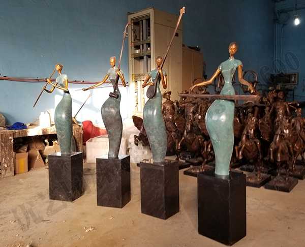 優(yōu)藝雕塑制作的這一組古典風(fēng)格音樂主題銅人物雕塑擺件,其古樸的色澤和簡約的造型,